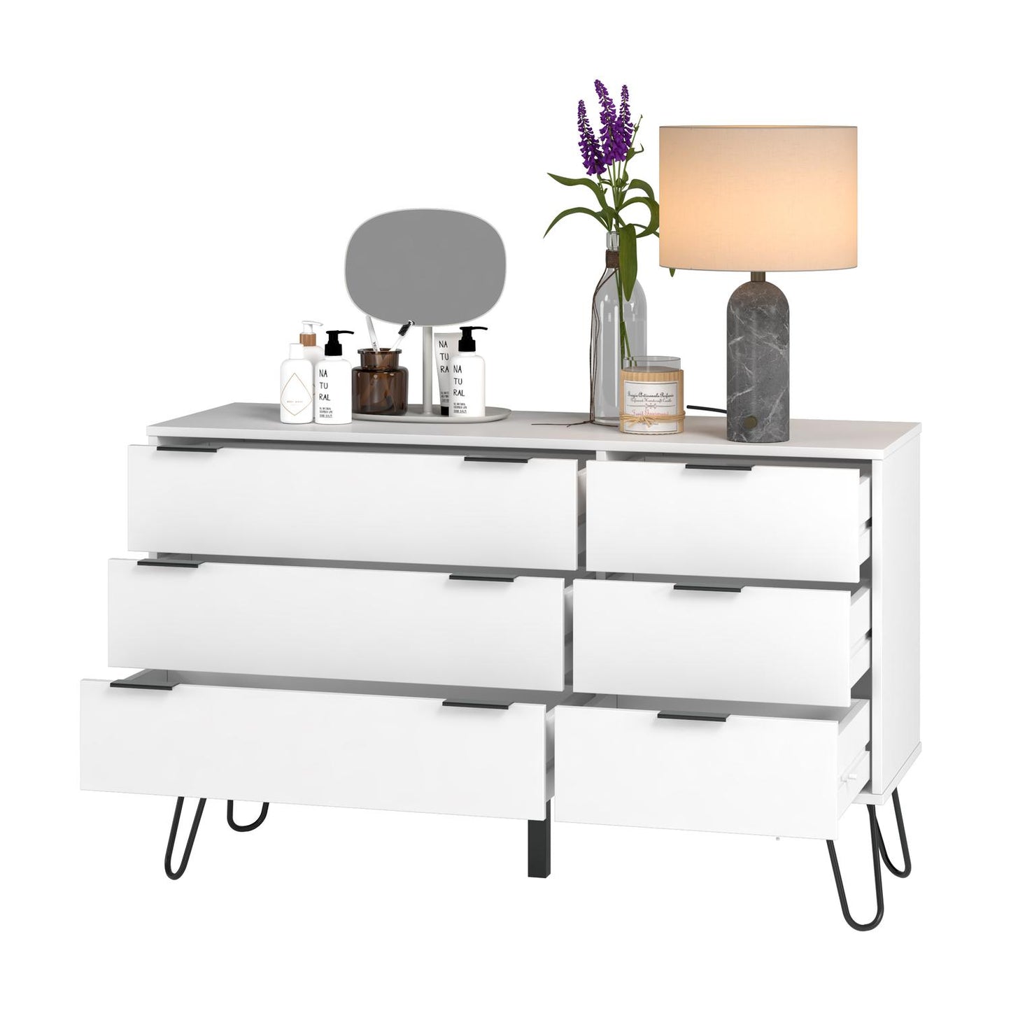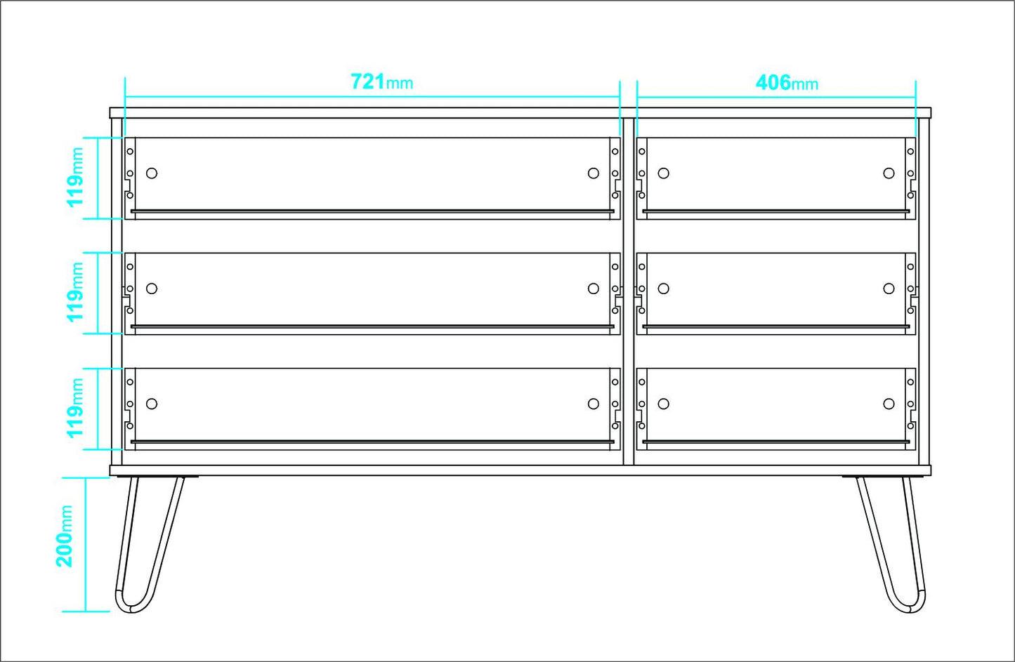 - Diseño Clásico y Elegante: El diseño de esta cómoda es atemporal, lo que significa que se verá increíble en cualquier entorno. Los detalles cuidadosamente elaborados, como los tiradores metálicos, aportan un toque de sofisticación.